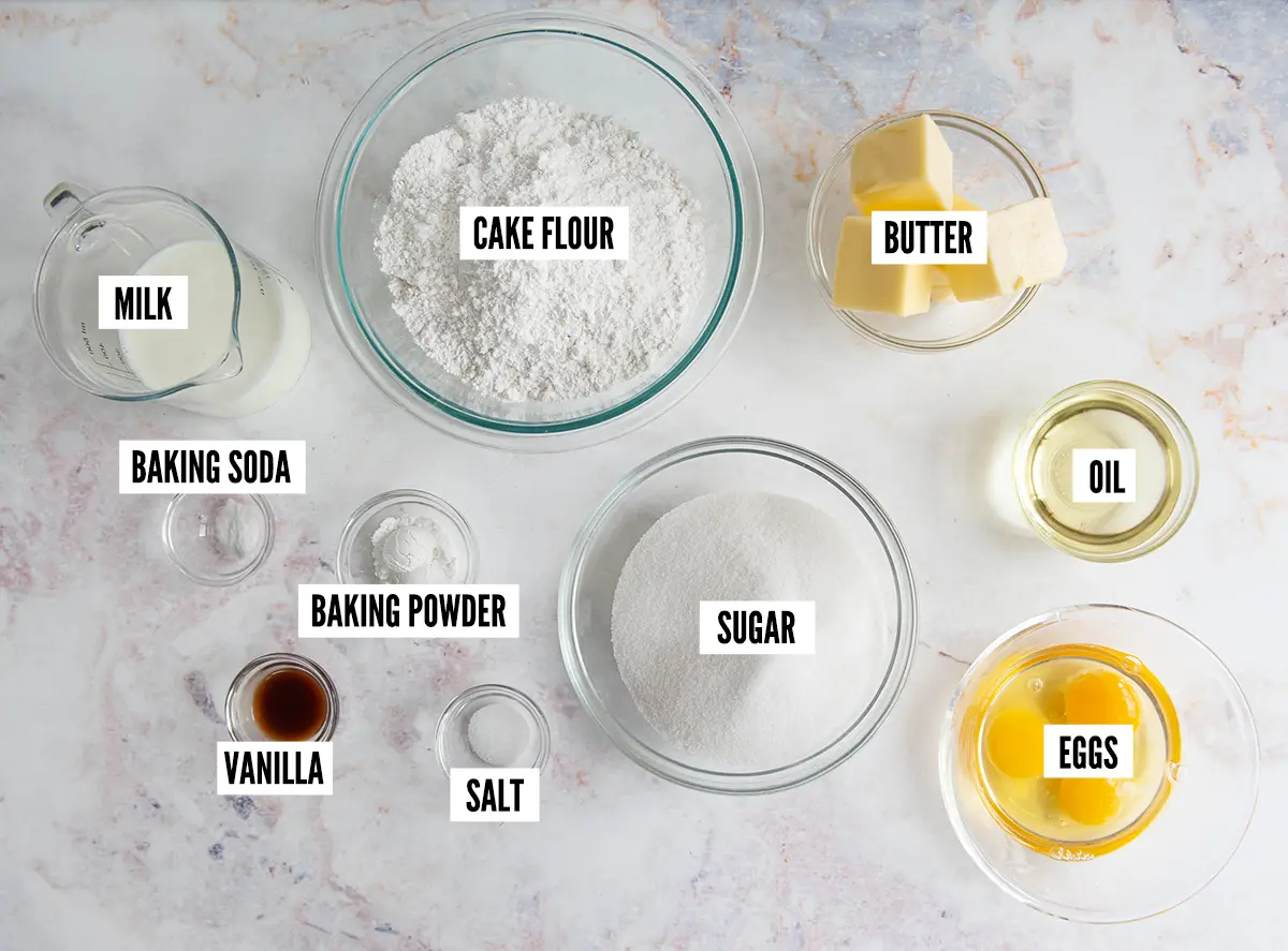 Step 4 – Place your cake flour, sugar, baking soda, baking powder, and salt into the bowl of your stand mixer with the paddle attachment attached. You can also use a hand mixer.